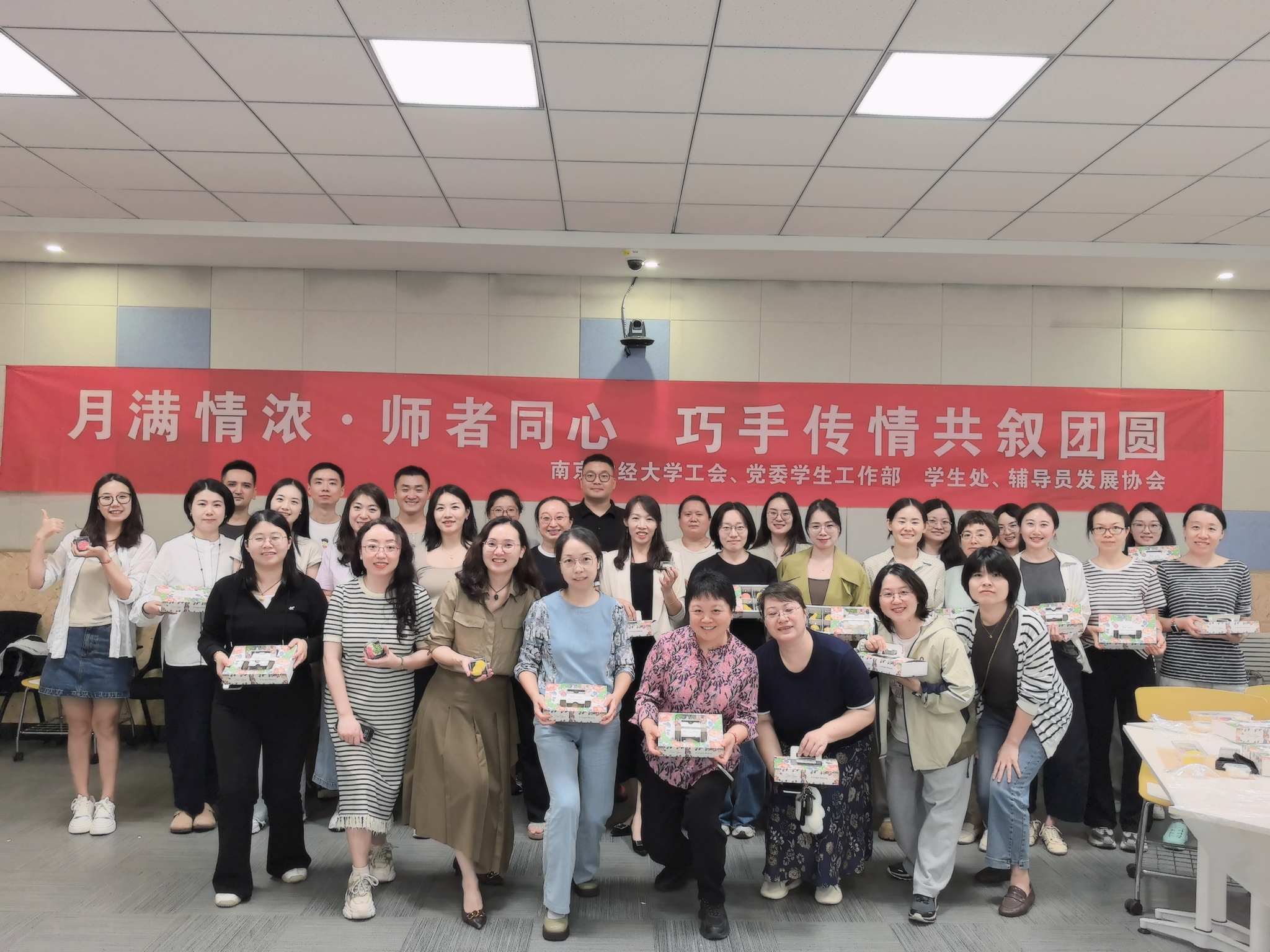 秋韵盎然,丹桂飘香,9月29日下午,“月满情浓・师者同心”辅导员沙龙在我校仙林校区博文楼JA101智慧教室举办。校党委学生工作部副部长、学生处副处长袁怡琨出席活动并致辞。本次活动由校工会主办,党委学生工作部、学生处协办,辅导员发展协会承办,各学院辅导员欢聚一堂,一同制作月饼,在轻松愉悦的氛围中舒缓开学以来的工作压力,共叙情谊,凝聚团队力量。