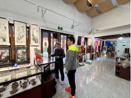 在袁总陪同下,师生们参观了非遗展厅、传承人工作室、文创产品展示等,该中心汇聚了溧水众多优秀非遗项目,致力于推动溧水当地非遗技艺发展。袁总表示,中心成立近一年,在宣传和销售方面效果不佳,虽对新媒体营销有一定了解并进行了尝试,但不够精通,希望学校能提供帮助。师生们分享感受和建议后,俞凡老师提出三步走策略:先通过系列短视频强化抖音账号非遗文化宣传功能;在节日活动或线下手工活动时现场直播,引入非遗文化话题;吸引一定粉丝后销售非遗活动体验券,引流线下体验。朱明远老师据此对后续学生团队进入中心实训和校企合作进行具体安排和建议。袁总认可师生建议,表示将完善抖音账号,并希望学生尽早参与制作专题短视频,期待与学校开展更深入的合作。