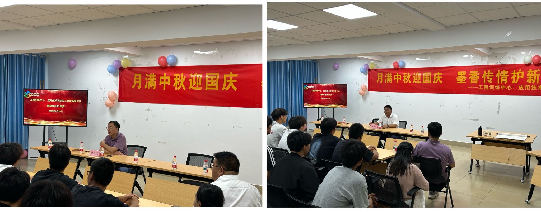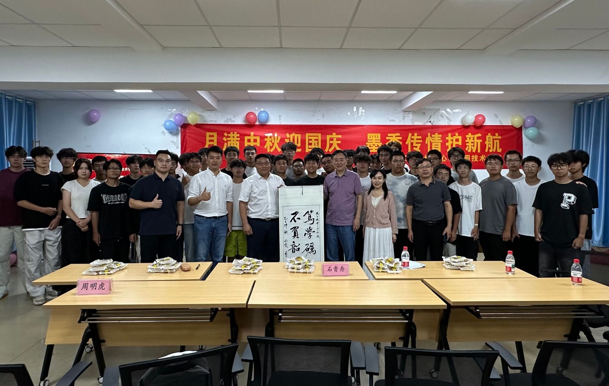双节之际,为助力2025级新生更好地融入大学生活,9月29日,工程训练中心、应用技术学院党委书记石贵舟、党委副书记班生、关工委常务副主任周明虎走进北区L303“一站式”学生社区,举办“月满中秋迎国庆 墨香传情护新航”主题活动。