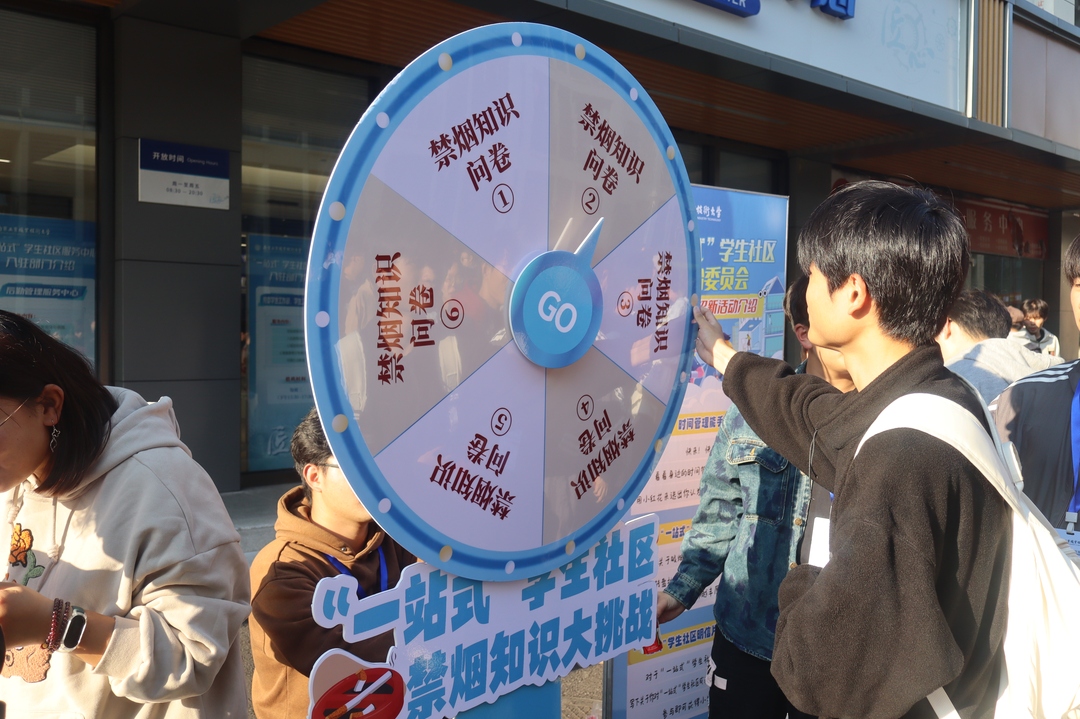 禁烟知识问答环节在本次活动中吸引力了大批同学参与。随机抽取的禁烟知识问卷中包括了吸烟的危害、戒烟的方法以及校园禁烟的必要性等方面的知识。通过转盘抽题、有奖答题的形式不仅增加了活动的趣味性,也让同学们更加自觉地抵制吸烟行为,共同营造一个绿色健康的无烟社区环境。