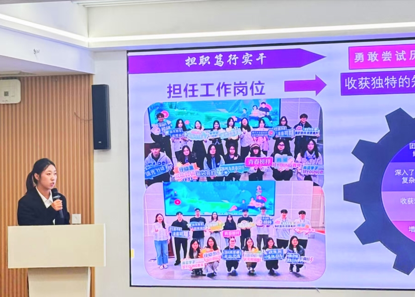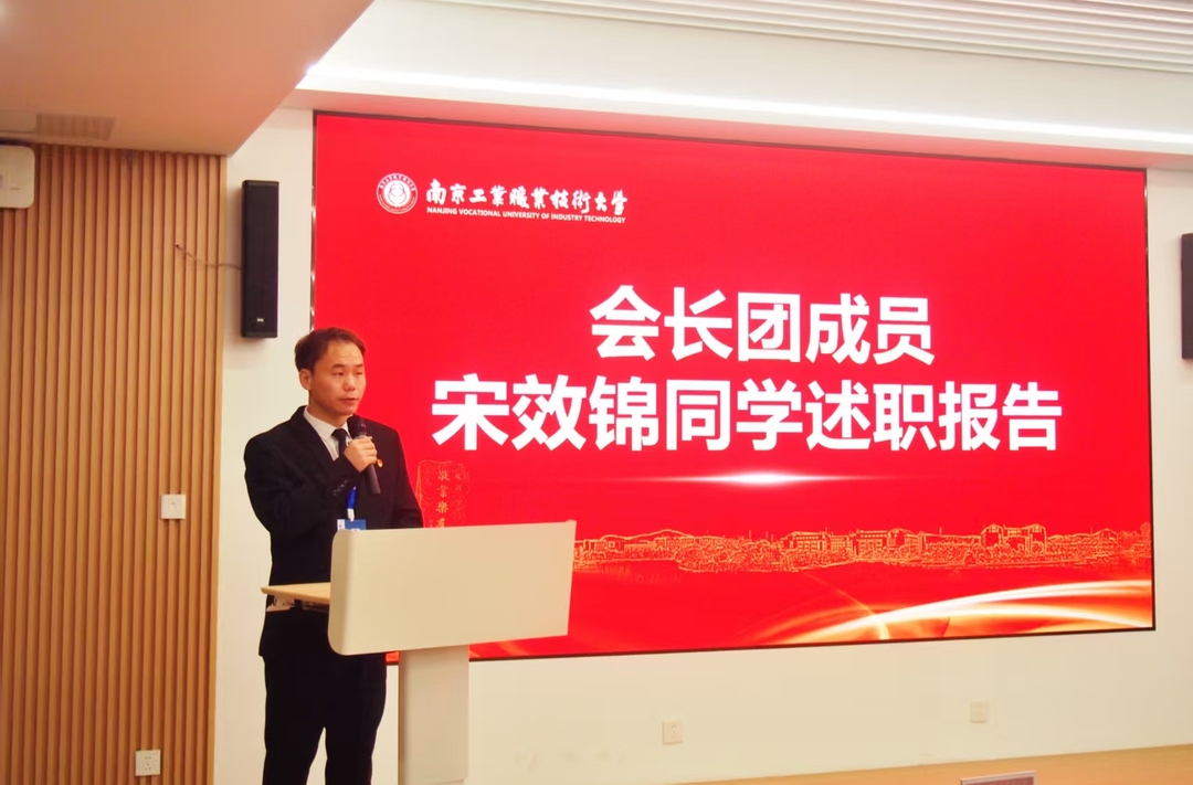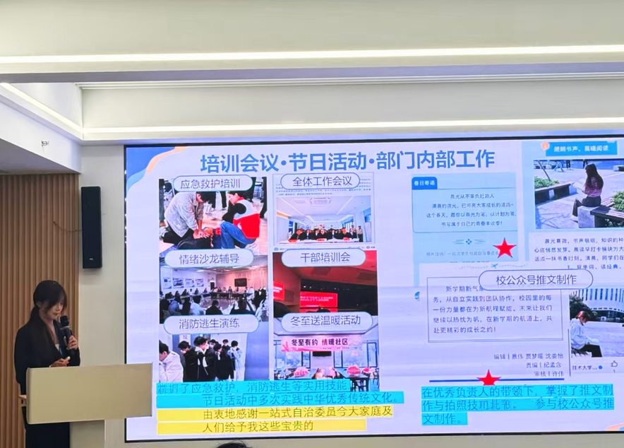 会长团成员代表宋效锦代表首届自治会作述职报告。他梳理了委员会成立一年来的核心工作:从策划嘉年华活动助力社区招新,到社区文化节增强学生凝聚力,各项举措始终围绕“打造学习交流、生活互助、文化交融的温馨社区”目标推进。同时,他也提及工作中遇到的困难与不足,以及大家在组织中的成长和锻炼,为自治会更好的发展分享了自己的思考。