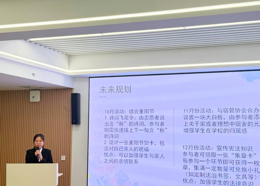 最后,来自各个学院的竞选者怀着对学生社区工作的热忱依次进行风采展示,他们自信的表达与务实的设想,让在场师生对自治会的未来充满期待。