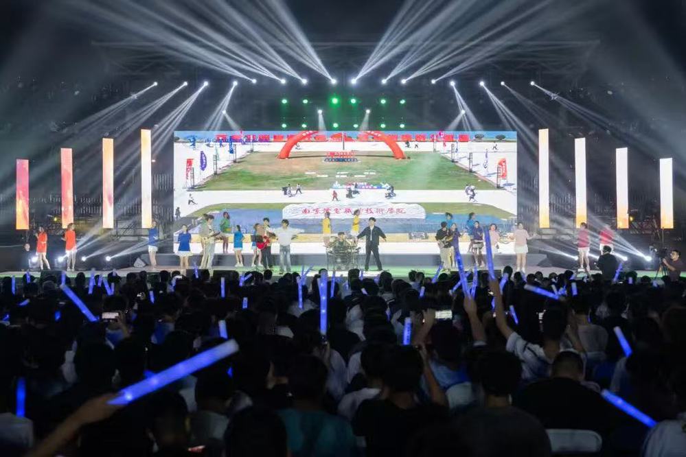 “年轻人 来高淳 横着走”。10月11日晚,南京机电职业技术学院体育场内灯光璀璨、青春飞扬,一场为南京机电职业技术学院、南京财经大学红山学院、南京理工大学紫金学院、苏州科技大学天平学院、南京航空航天大学金城学院5所高校新生打造的青春盛宴精彩上演,以美食、非遗、科技与一场燃爆全场的晚会,向青春发出了最热情的邀约。