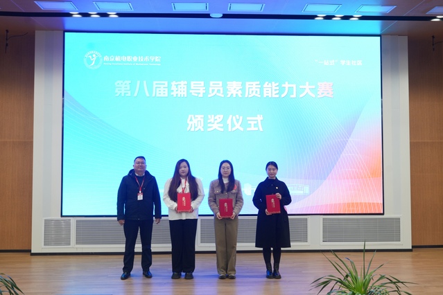 经过激烈比拼,信息工程系辅导员毛玲伟获一等奖,电子工程系辅导员朱倩、自动化工程系辅导员袁佳荣获二等奖,机械工程系辅导员谢珺、电子工程系辅导员刘夏岚、人文社科系辅导员吴瑶荣获三等奖,机械工程系辅导员刘娜、王晨歌、信息工程系辅导员王子灿、人文社科系辅导员张文婷荣获优秀奖。学校领导为获奖选手颁奖。
