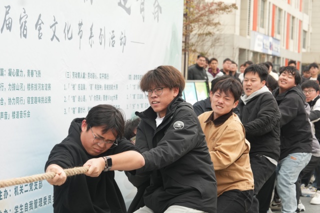 为深入推进“一站式”学生社区建设,丰富社区文化生活,营造和谐、活力、团结的社区氛围,我校第十二届宿舍文化节之“‘寓’你同行,力拔山河”楼栋拔河友谊赛与“‘寝’投意合,协力同行”寝室趣味挑战赛顺利开展。活动吸引了广大师生及社区管理服务人员积极参与,有效提升了社区凝聚力。