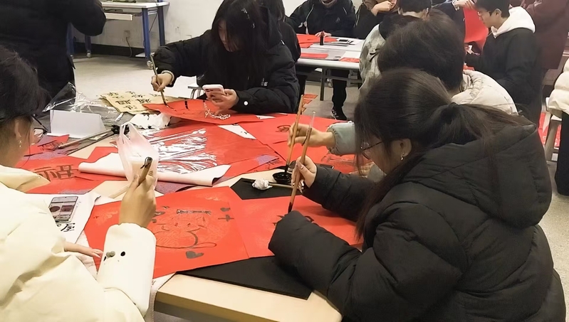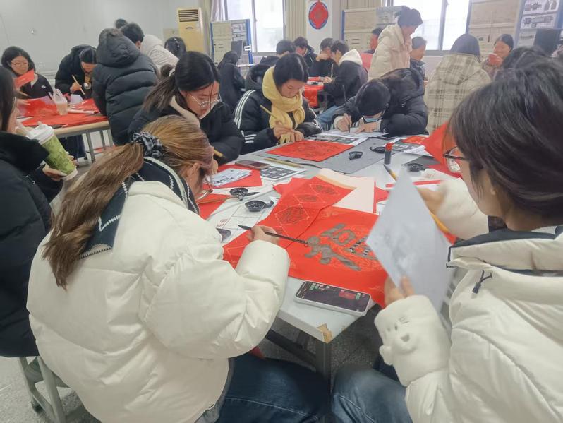 除了“福”字书写,活动还设置了春联书写区与趣味知识竞答环节。师生们兴致勃勃地书写春联,一幅幅寓意吉祥的春联饱含着对生活的热爱;传统文化知识问答环节则点燃了大家的参与热情,大家踊跃抢答关于元旦、春节的传统习俗、书法常识等问题,现场气氛热烈融洽,答对的参与者还收获了精美的小奖品,在轻松欢乐的氛围中增长了知识。
