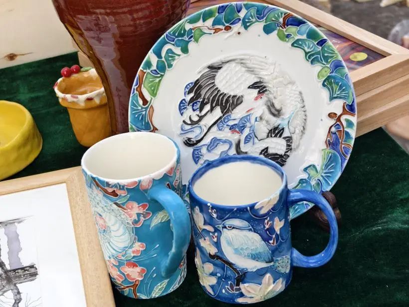 现场展示了许多美院同学们自己创作的艺术作品,包括绘画作品,各类陶瓷制物,刺绣等等,让大家在欣赏丰富精彩的作品的同时,对艺术产生更多理解,展现了美院学子的艺术风采。