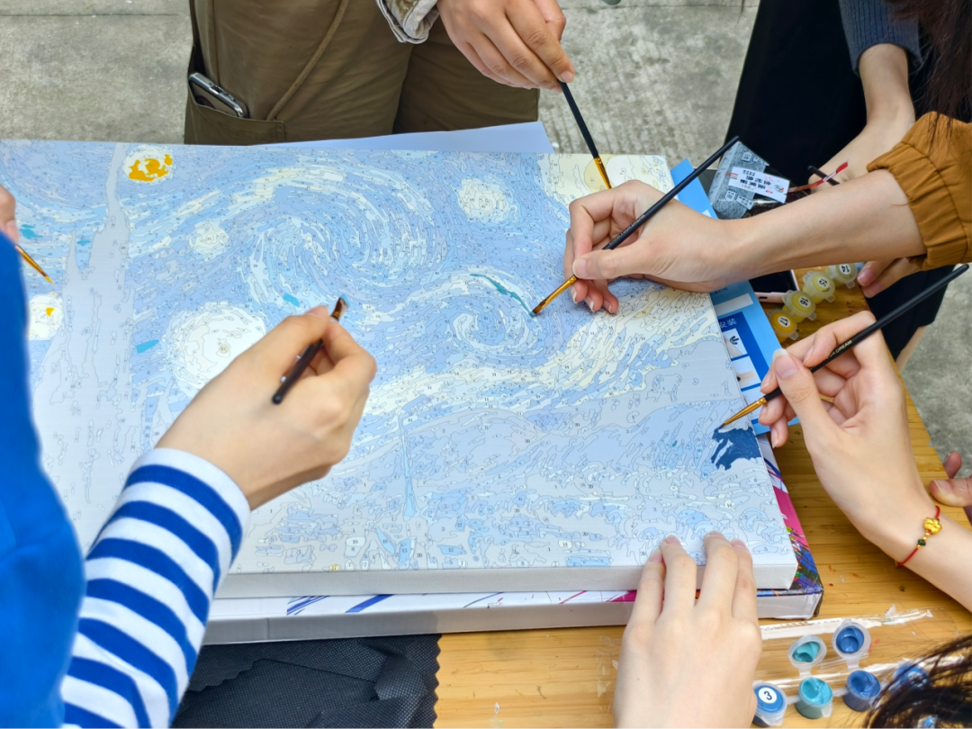 不仅如此,精彩纷呈的小游戏更是为活动又增添了一抹趣味,进行游戏的过程还能获得许多可爱的奖品,让同学们充分参与其中。现场还让同学们能够亲自动手,参与创作数字油画,在合作中进行艺术交流与联结,通过亲身体验,触摸艺术创作的无穷可能性。