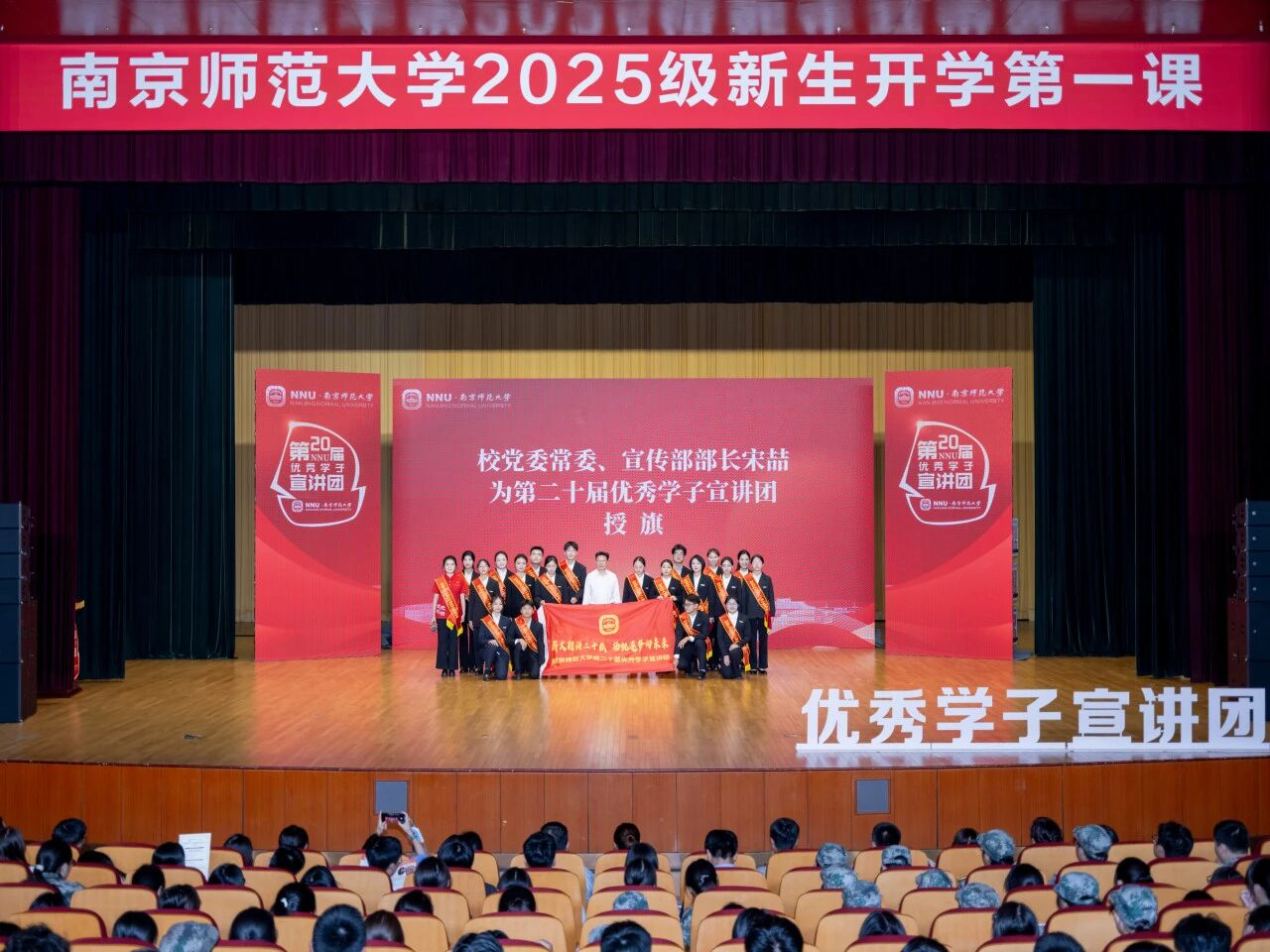 9月22日,仙林校区北苑举办优秀学子宣讲团首场报告会,全校同步设 28 个分会场实时直播。优宣团成员们为新生明晰求学方向,树立优秀模范。本次活动通过一位位优秀学子分享成长故事和“传承・对话” 环节传递榜样力量,营造了奋进向上、积极乐观的氛围。