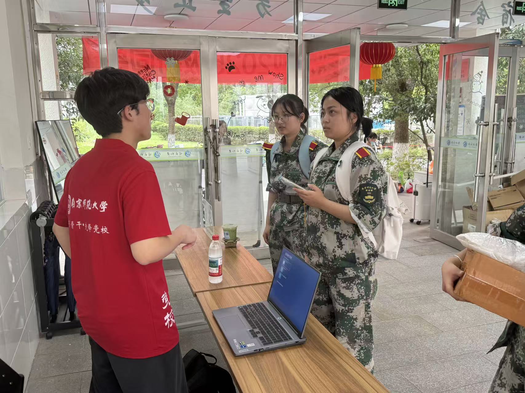 9月13至14日,易班学生工作站联合学生公寓自我管理委员会与校园网络通讯站,于仙林校区开展“‘易’起迷彩,清凉‘易’夏”军训慰问主题活动,随机选取部分连队,为军训新生送去清凉饮品,在炎炎夏日帮助新生们消解疲惫。