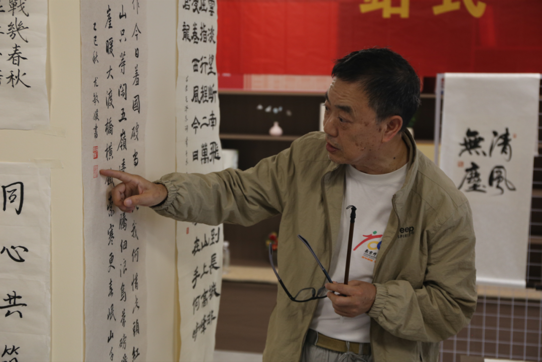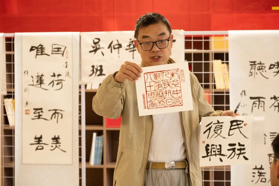活动伊始,侯小刚展示其书法作品。侯小刚深耕翰墨多年,作品笔力遒劲、气韵生动,为整场活动奠定了高雅的传统文艺基调,也为后续的师生互动与现场书写营造了浓厚氛围。