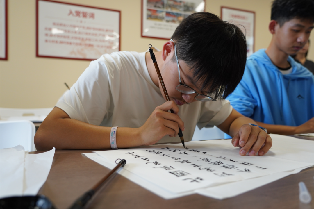2025年10月15日下午,能源与机械工程学院在南京师范大学仙林校区海棠苑19栋党建活动室成功举办“一站式”师生书法交流活动。本次活动旨在弘扬中华优秀传统文化,将书法艺术与能源学子的精神培育相结合,为广大师生搭建一个静心书写、以墨会友、陶冶情操的交流平台。院党委书记彭海、退休教师侯小刚、院党委副书记吴希媛、学工处教师伊斯堪达、19栋宿管阿姨、院机关教师代表及2025级本科新生共同参与。本次活动由2025级辅导员贾俊鹏主持。