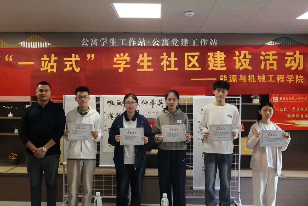 本次活动由能源与机械工程学院党建工作站、学生会、易班学生工作站共同承办,将美育实践融入学生社区,以“一站式”书法交流为载体,生动践行了传统文化育人的教育理念。活动通过作品展示、颁奖激励与教学实践相结合的方式,既彰显师者风范,也激发学生兴趣,有效增强了学生对传统文化的认同感与审美素养,也为学院新生入学教育及“一站式”学生社区建设活动的持续深化积累了宝贵经验。
