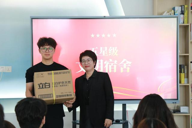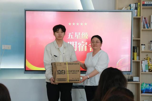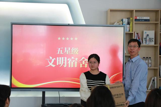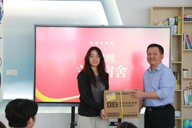 随后,在热烈的掌声中,老师们为获奖宿舍颁发“荣誉标识牌”及生活礼包,并鼓励同学们以宿舍为“船”,以文明为“帆”,以团结为“桨”,共同航向和谐融洽、美美与共的学生社区建设新征途。