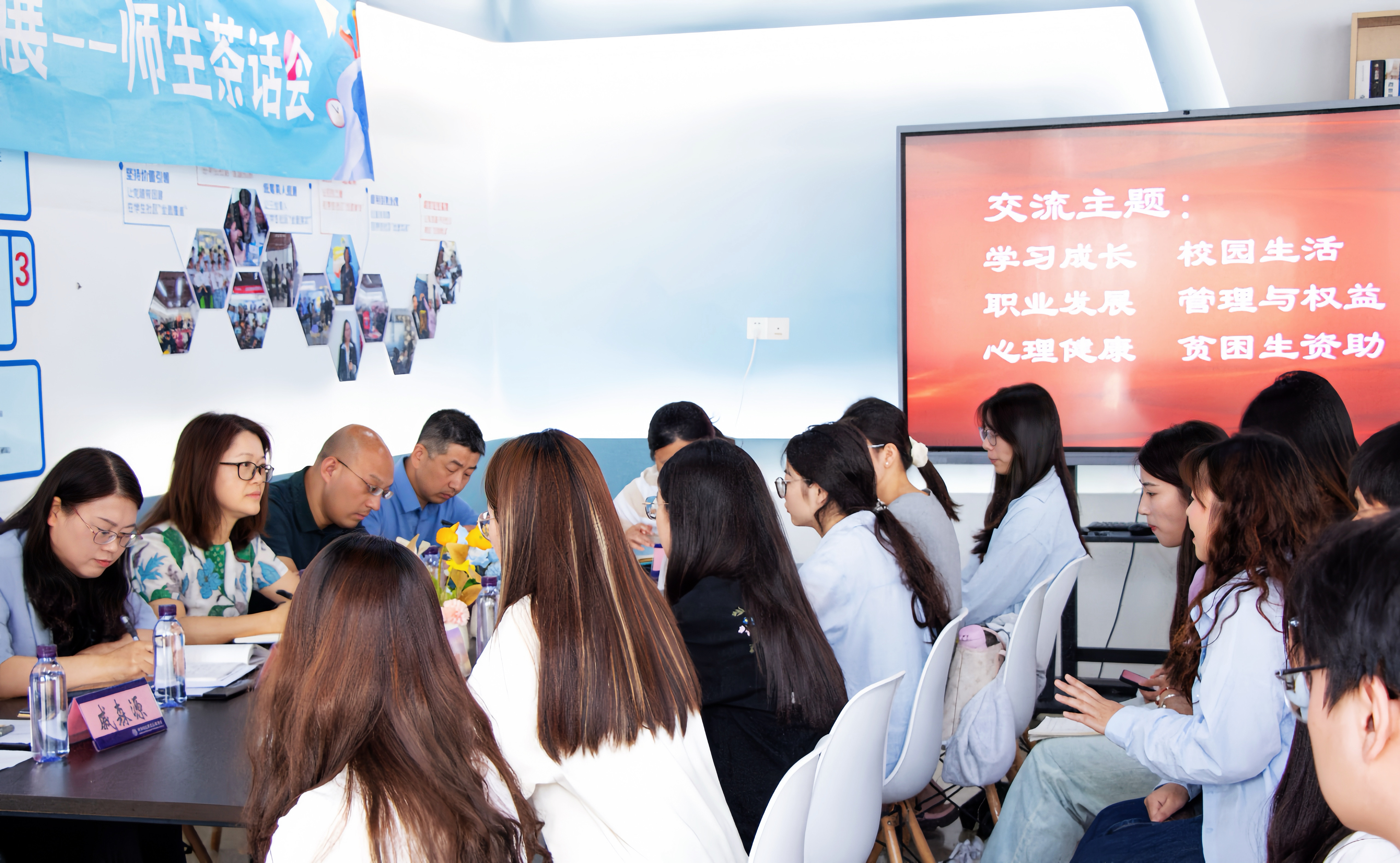 为深化“以学生为中心”的育人理念,搭建师生近距离沟通桥梁,5月26日下午,数字商务学院党总支在一站式社区举办了“听生音 话成长 谋发展”师生茶话会。校党委委员、副校长李艳、后勤管理处处长刘刚、分院班子成员、教研室主任代表、全体辅导员及学生代表齐聚一堂,围绕学生成长发展的热点问题展开深入交流。