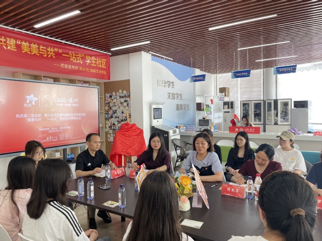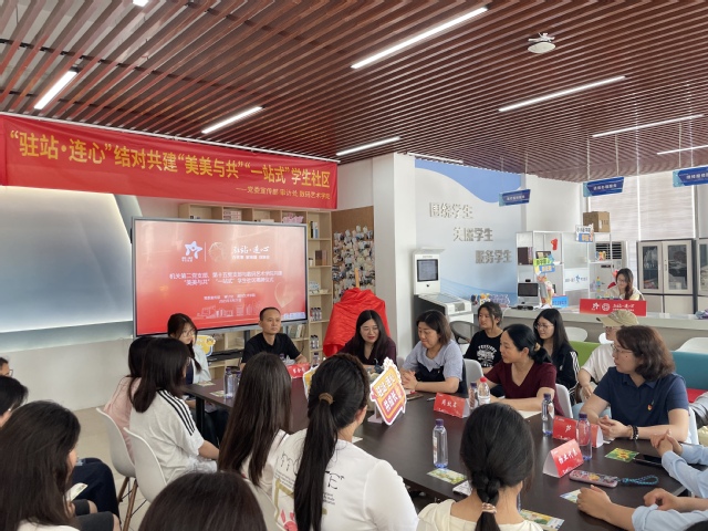 崔金魁首先介绍会议主旨是通过机关党总支与学院联动,构建“党建+服务+育人”一体化社区生态。吴笑欢阐释了“驻站・连心”共建机制的背景,她强调将以党支部为纽带打通管理服务“最后一公里”;钱晓丹则围绕十号站空间功能布局、“美美与共”文化品牌内涵,描绘了社区“艺术浸润+思政引领”的建设目标,提出了通过美育实践促进学生全面发展的具体路径。