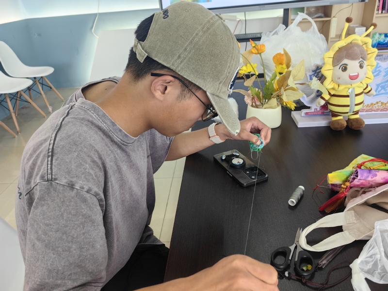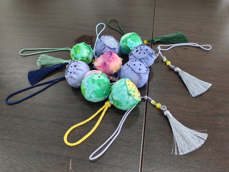 “亲手做的香包特别有意义!和老师还有同学们一起动手,感觉特别温。临近期末考试,莲蓬香包挂在手间,能时常回忆起这段美好的时光,很解压,很安心。”一位参与活动的同学拿着自己制作的香包开心地分享道。