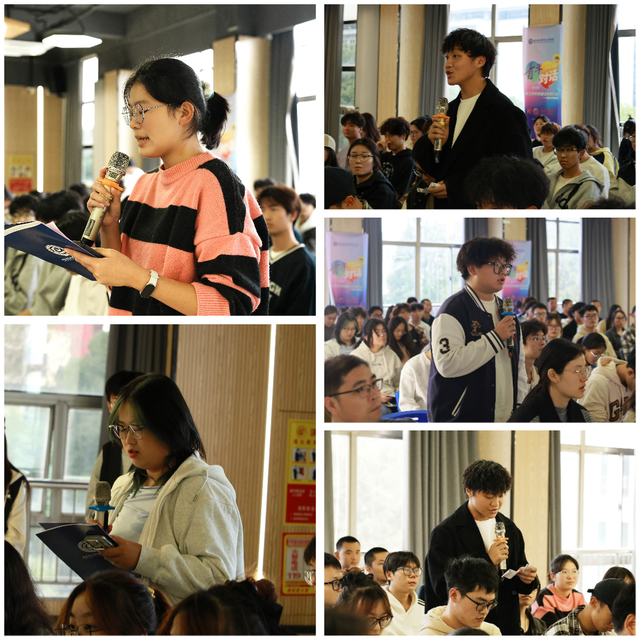 在持续两个小时的互动交流中,新生代表围绕各类学习生活方面的问题踊跃发言,展现了新生群体对大学生活的深入思考与多元期待。“如何明确专业学习目标,合理安排选课?”“新兴领域的优质岗位如何获取?”“跨社团联合活动学校是否有组织计划?”“食堂能否推出小份菜减少浪费?”“非工作时间有心理困扰该如何求助?”“初次参与创新创业竞赛有哪些赛前培训?”一个个具体而真实的问题,传递出新生对自身成长发展的渴求和校园生活的关注。现场老师认真倾听、耐心记录,并结合政策规定与实际案例逐一回应,针对部分需进一步协调的问题,也郑重承诺将持续跟进、推动落实。