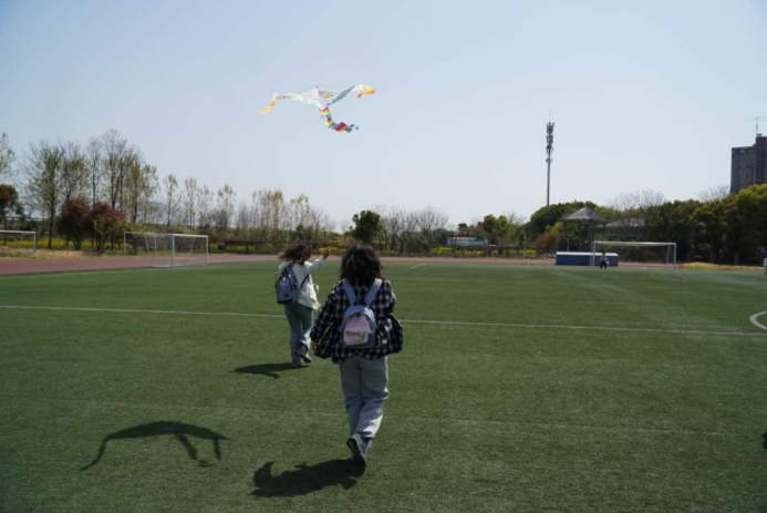 随后,大家一起前往南操,放飞属于自己的风筝。每一只风筝都独一无二,承载着大家的奇思妙想。大家看见自己绘制的风筝高高地挂在蓝天上,欣喜之情洋溢在脸上。一筝春彩,晴空悠然,我们的梦想与无限春光同行。在这个春天,让风筝带着心愿与思念飞翔,拥抱这独属于春日的温柔与希望。