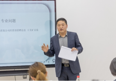 模拟面试大赛开始前,两位企业导师先给大家做了面试的相关培训,孙懿瑾老师针对主要的面试类型,详细解读相关规则和评估依据,并就如何在无领导小组讨论和结构化面试中展示个人能力提供了专业指导。她的讲解不仅系统全面,而且富有启发性,让同学们对面试有了更为深刻的理解。王克矿老师从企业招聘专业人才的角度出发,为同学们讲解如何理解和应对专业类面试问题,揭示人岗匹配的重要性,并就如何展示知识技能和职业素养做案例分析。他强调了在求职选择中,第一份工作提供的平台对个人职业发展的深远影响,同时也着重指出了解决困难、团队协作与帮助他人成长的能力对于求职者的重要性。