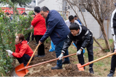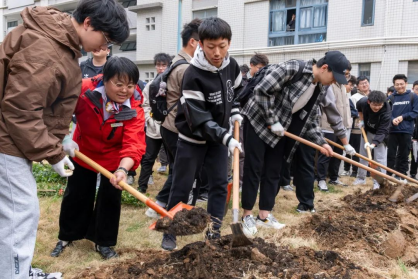 活动中,同学们拿起锄头、铁锹,扛起有机培养土,互相配合栽种下一株株树苗,亲手种下花生、冬瓜和南瓜。在烈日下挥洒汗水,体验劳动之美,感受亲手培育生命的成就感。
