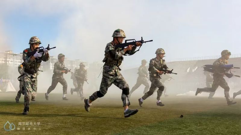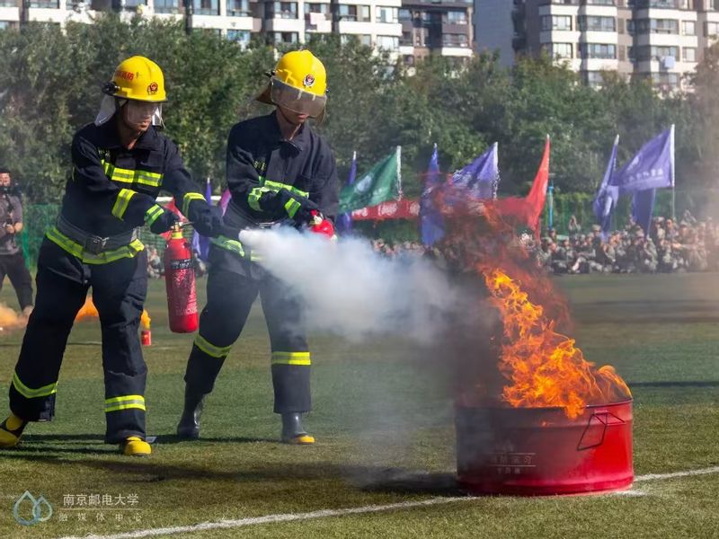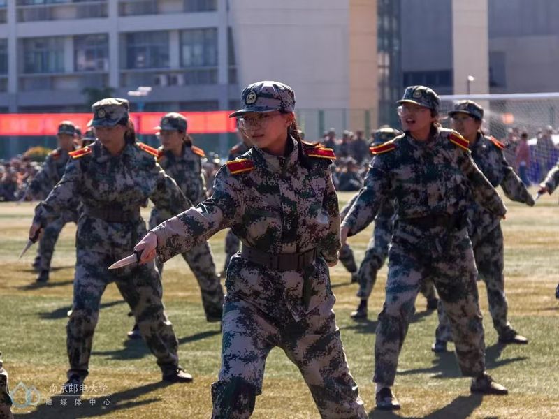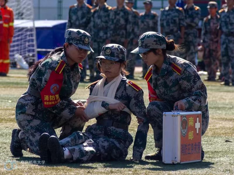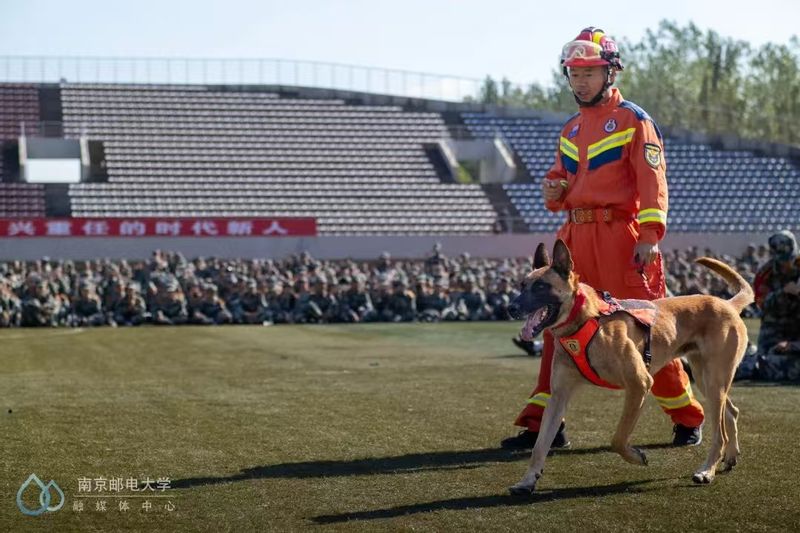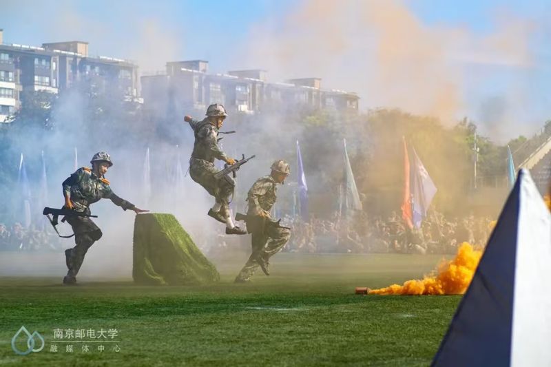 分列式方队步履铿锵地依次通过主席台,他们昂首挺胸、神采飞扬,以洪亮的口号、整齐的挥臂、坚定的脚步、昂扬的姿态展现了南邮学子热情饱满的精神风貌。好男儿势不可挡,女儿郎巾帼风采,红旗方阵整齐划一,军体拳表演虎虎生威,匕首操表演气势如虹,战术演练、消防及应急救护训练有素,现场掌声雷动。