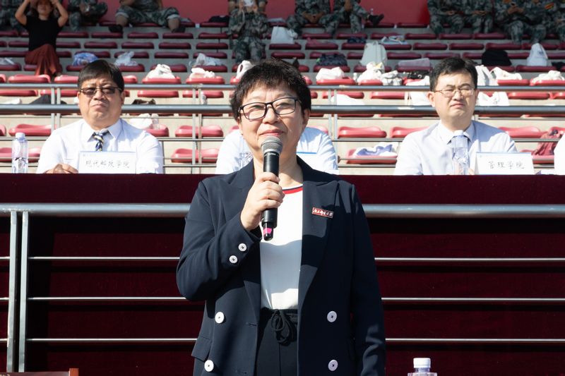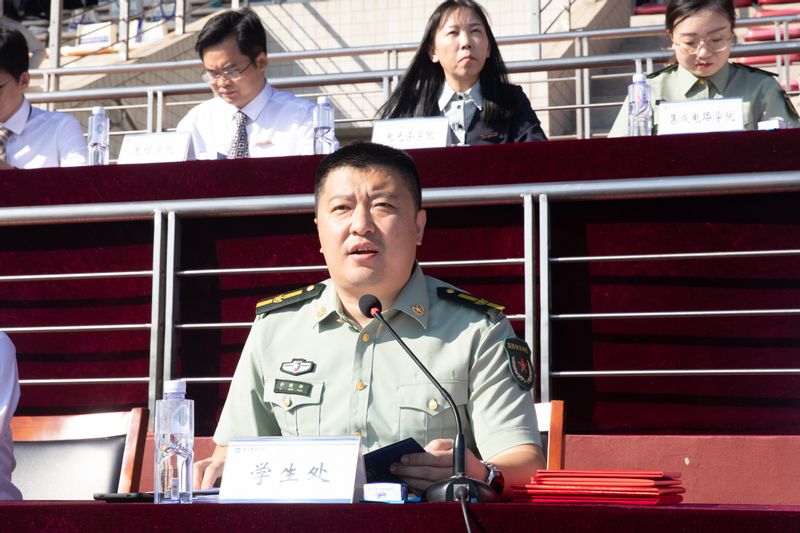 党委学生工作部部长、学生工作处处长、人民武装部部长李晓华主持军训成果汇报会