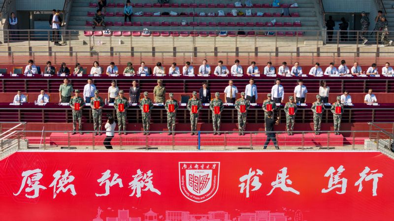 秋意清凉,朝阳璀璨。迎着第一缕阳光,9月24日早晨,南京邮电大学2024级本科生新生开学典礼暨军训成果汇报会在仙林校区主体育场隆重举行。校党委书记郭宇锋,校长叶美兰,某驻宁部队政治工作部副主任陈燕平,校党委常委、副校长王友国,校党委常委、副校长谢平,副校长赵强出席开学典礼。典礼由谢平副校长主持。