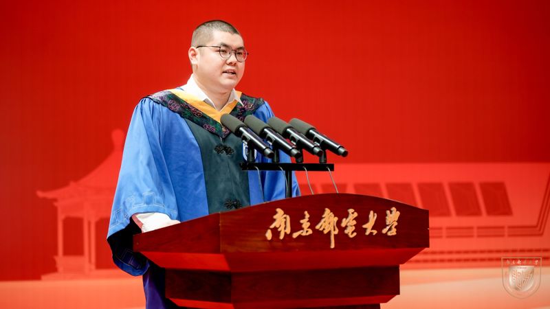 “我们将带着母校赋予的情怀和担当,在祖国和人民最需要的地方继续贡献青春力量。”硕士毕业生代表,第十八届全国“大学生年度人物”获得者,电子与光学工程学院、柔性电子(未来技术)学院万宝飞回顾了在南邮求学的时光。他表示,未来将以“信达天下,自强不息”的南邮精神为指引,用好所学专业知识,牢记科技报国使命,争当时代“破风者”。