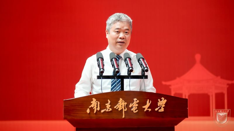 郭宇锋代表学校向毕业生们表示热烈的祝贺和诚挚的祝福,向在同学们求学道路上付出辛勤汗水的各位老师和家长致以崇高敬意和衷心感谢。“你们或紧跟前沿热点,研究成果发表在世界顶级期刊;或深耕创新实践,在各项学科竞赛中斩获佳绩。你们以青春之名,践行科技报国的铮铮誓言。”他回顾了同学们与学校共同走过的岁月。在同学们即将离开南邮校园、踏上崭新征程之际,寄语毕业生:坚持科技向心,做人文精神的传播者;坚持科技向真,做原始创新的破壁者;坚持科技向善,做人类福祉的赋能者。