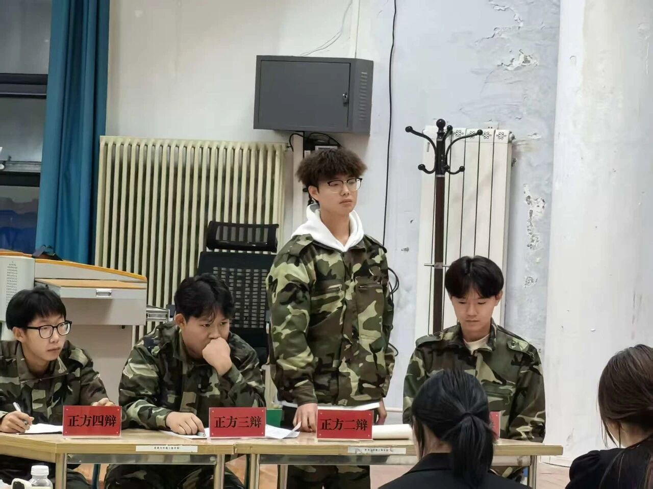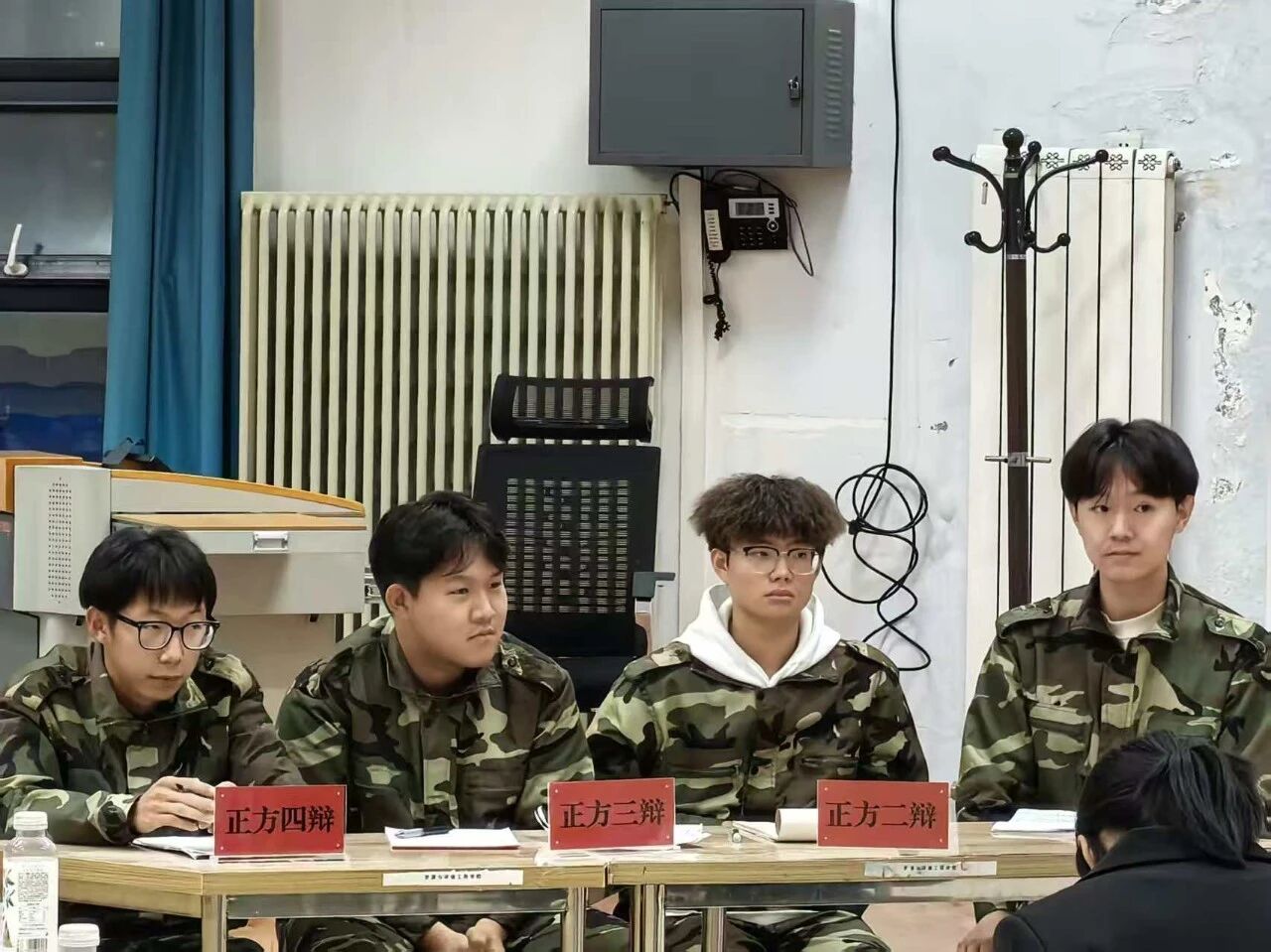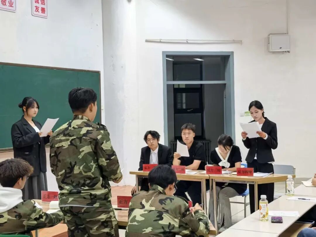 有的辩手身着正装,手持文稿从容站立,以清晰的条理拆解辩题(如图中身着黑色西装的辩手);有的队伍统一着装,在“正方二辩”“正方三辩”的铭牌前,或凝神倾听、或即时记录,在攻防转换中默契配合(如图中身着迷彩服的正方队伍)。他们时而以数据论据夯实观点,时而以反问诘难直击要害,时而以情感共鸣打动听众,每一次发言都凝聚着团队的智慧结晶,每一场辩论都彰显着资环学子“明辨是非、探求真理”的精神风貌。