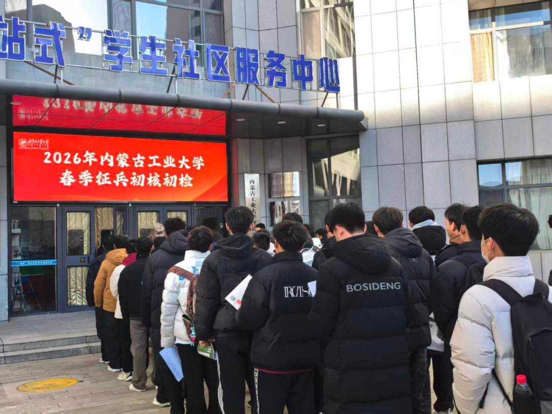 为深入贯彻习近平强军思想,扎实推进2026年春季征兵工作,内蒙古工业大学顺利开展征兵初核初检工作,全校51名应征学子以饱满精神参与体检、审核,用青春姿态递交参军答卷。