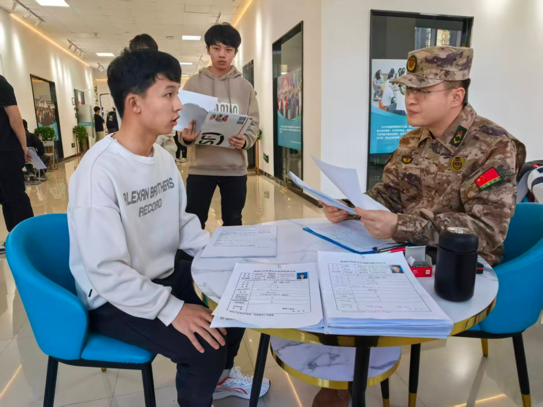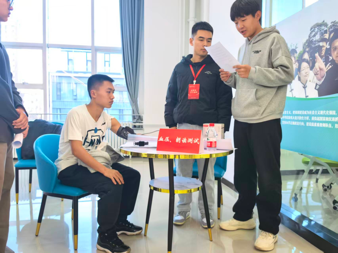 信息审核区工作人员仔细核查入伍动机、思想动态及家庭情况,同步开展政治素养初步考察,引导学子树立“参军报国、不负韶华”的坚定信念。退役大学生志愿者现场分享军旅经历、讲解征兵流程,用亲身感悟为应征学子加油鼓劲,营造暖心氛围。此次初核初检不仅完成兵员基础筛查,更强化了“携笔从戎,无上光荣”的校园氛围。