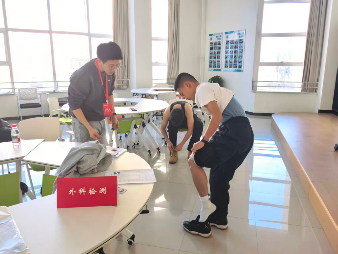 体检过程中,工作人员严格遵循《应征公民体格检查标准》,秉持“公平、公正、严谨、细致”原则,逐项检测基础指标,分别对应征学子进行身高体重检查,视力筛查,外科检查等项目,精准记录数据并耐心解答学子疑问。