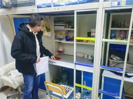 检查人员按公寓楼分组,深入学生宿舍,重点排查管制刀具、易燃易爆物品、违规大功率电器的使用情况,同时对私拉乱接电线、飞线充电、宿舍吸烟等安全隐患进行细致检查。针对发现的问题,检查组逐一记录并建立台账,明确责任主体,确保整改落实到位。检查过程中,检查人员还结合真实案例开展现场教育,引导学生增强安全意识,自觉防范安全风险,从思想源头筑牢安全防线。