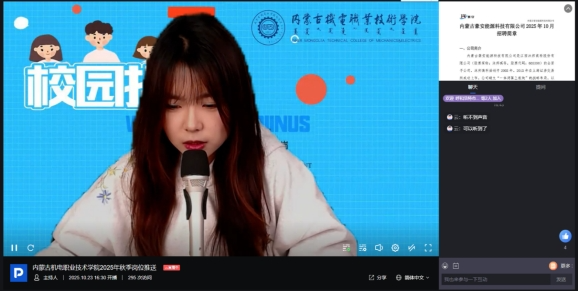 为进一步满足不同专业学生的就业需求,直播为同学们推荐了包头盛泰汽车零部件制造有限公司、内蒙古豪安能源科技有限公司、长安汽车等10家企业,覆盖汽车制造、能源科技、机械研发等多个与学院专业高度契合的领域,累计推荐岗位近200个,岗位类型涵盖技术操作、生产管理助理、设备维护、品质检测等,为学生提供了丰富的职业选择空间。