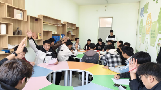 活动以“现代化”词汇云游戏开篇活跃氛围,随后吴晓红老师紧扣书籍核心章节,将“共同富裕”“高质量发展”等理论与内蒙古战略定位相结合,引导同学们对接专业与区域发展需求。“情境思辨”环节中,同学们分组围绕智能工厂转型、绿色能源发展等案例热议,形成多个“担当方案”。活动在《北疆机电英才誓言》中落幕,同学们许下技能报国承诺。