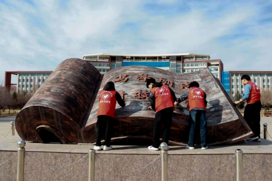 活动中,志愿者们分工协作、干劲十足,对校园宣传栏、铸牢中华民族共同体意识文化长廊、廉洁文化长廊、教学楼、匠园等区域进行了全面清洁与整理。他们认真擦拭宣传栏玻璃与边框,细致打扫主题文化长廊的环境卫生。身穿红马甲、手持清洁工具的志愿者们穿梭于校园各个角落,忙碌的身影成为一道亮丽的风景线。