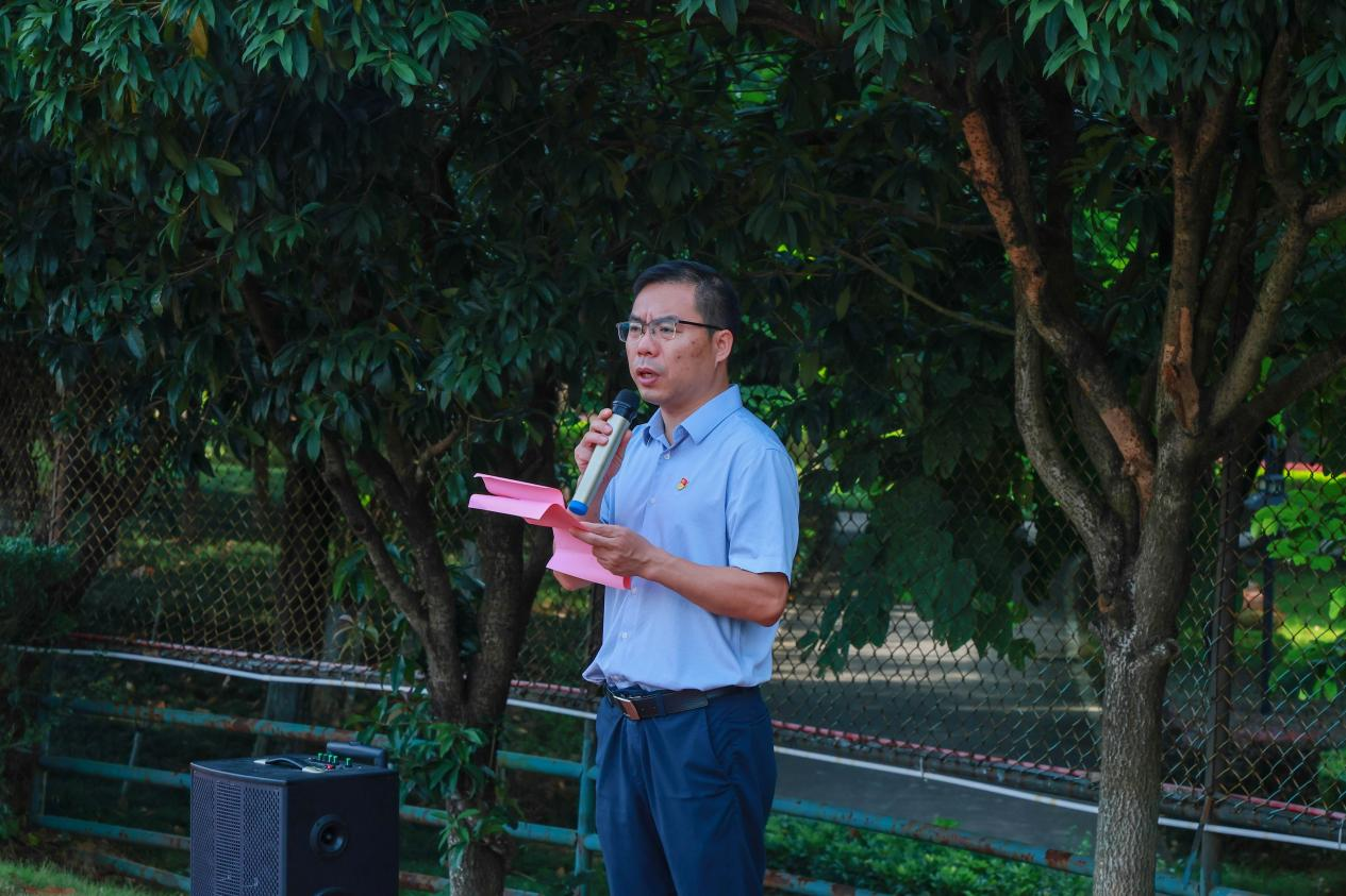 (党委书记、督导专员金飞在国旗下讲授爱国主义微党课)