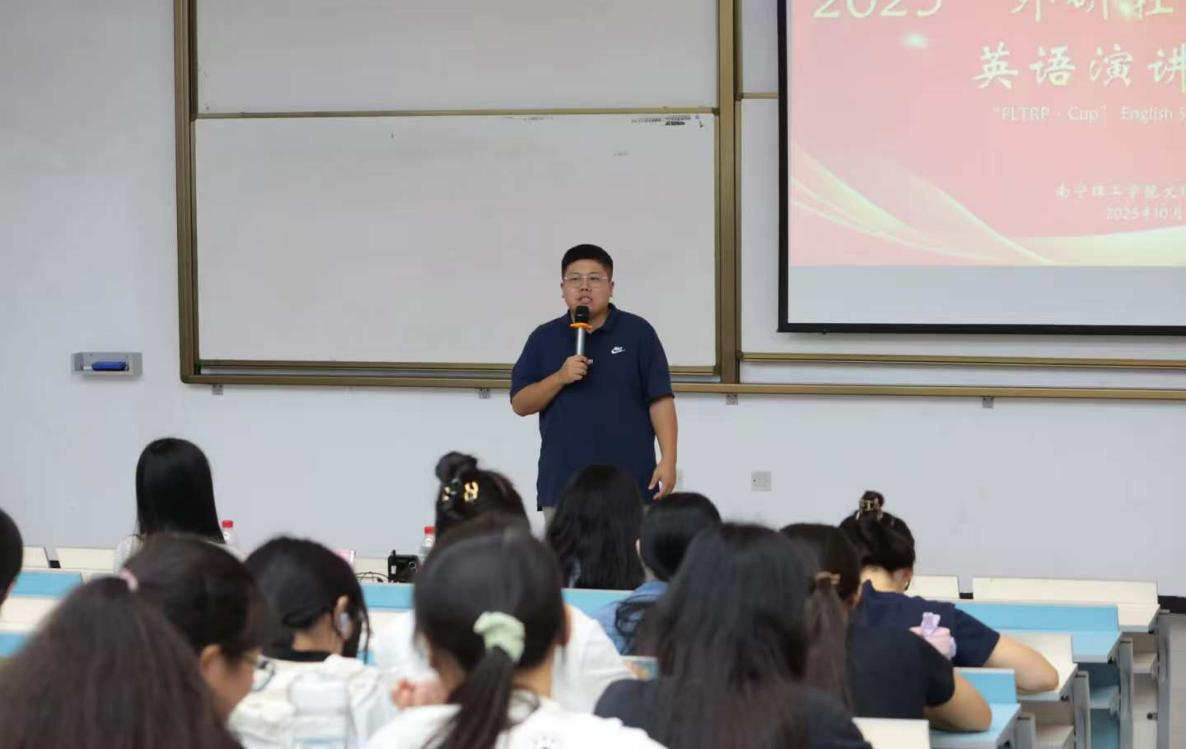 为激发学生英语学习热情,培养学生的家国情怀与国际视野,遴选优秀演讲人才,南宁理工学院新视域文化产业学院在2025年10月15日于东盟校区A3教学楼举办了2025年“外研社·国才杯”英语演讲南宁理工学院复赛。本次比赛邀请文理学院院长助理才卓男、英语专任教师黄麟珏及文理学院辅导员陆葉出席并担任评委。