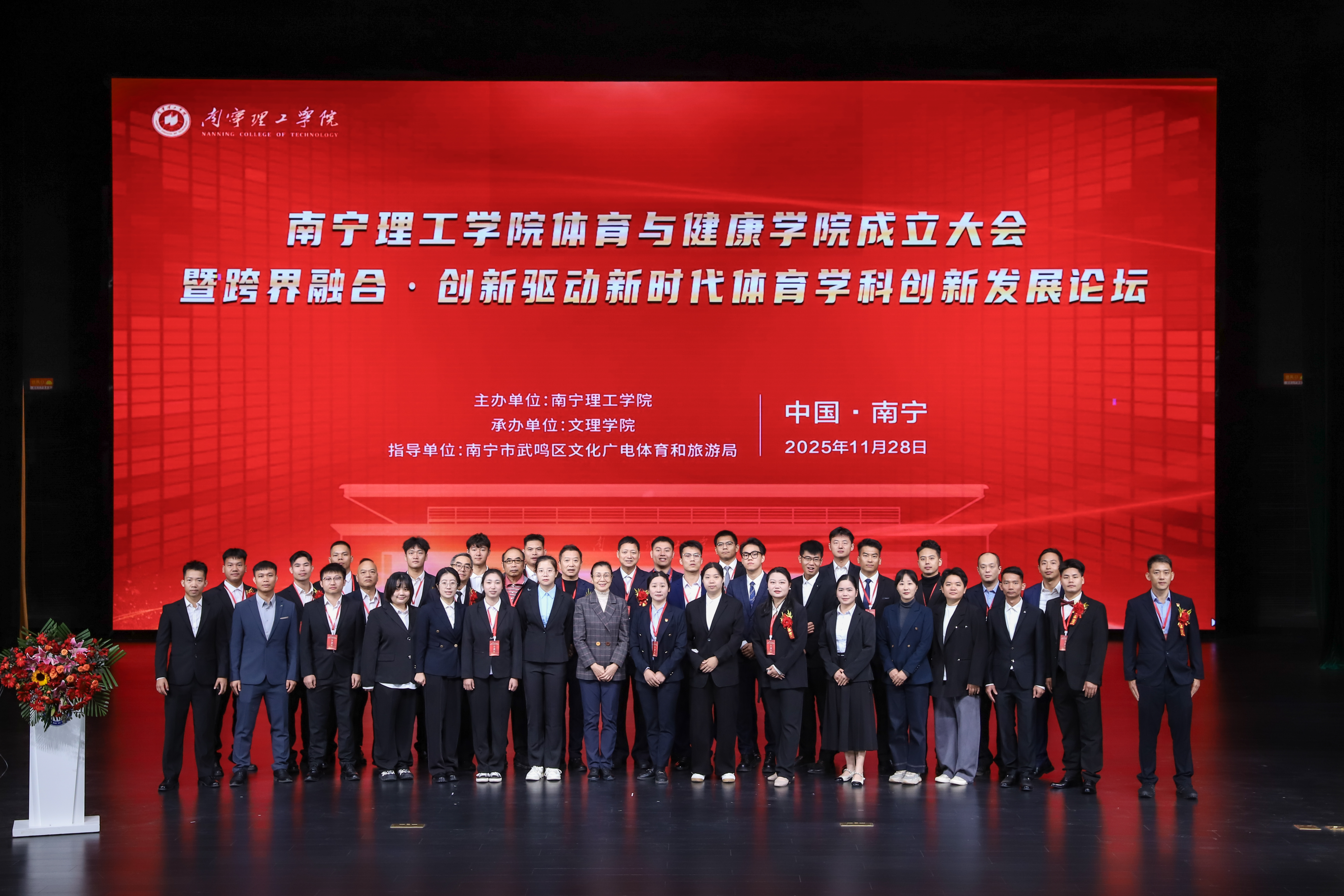 为深入践行体育强国与健康中国战略,推动体育学科高质量发展,11月28日上午,南宁理工学院体育与健康学院成立大会在南宁校区东盟大剧院隆重举行。政府部门代表、行业协会代表、各级领导、兄弟院校嘉宾与全校师生代表700余人齐聚一堂,共同见证这一历史性时刻。