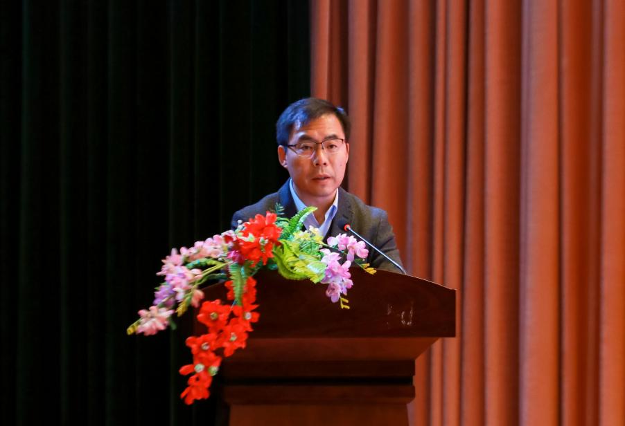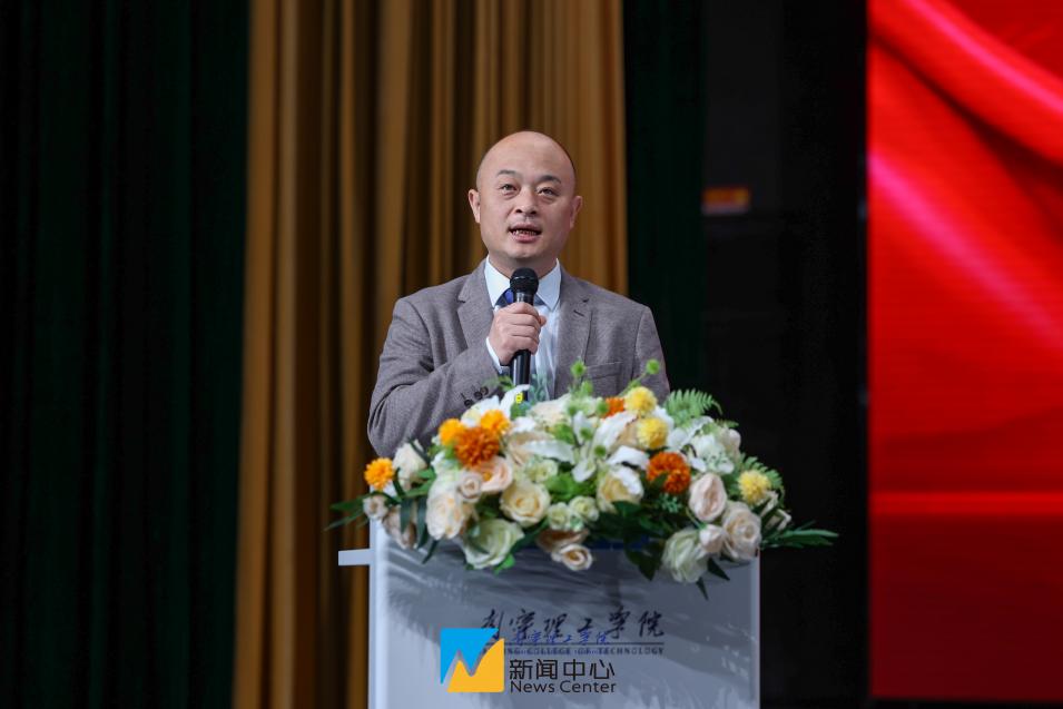 大会最后,学校党委书记、督导专员金飞围绕“青春奋斗筑梦想,砥砺前行谱新章”主题作总结讲话,他首先向受到表彰的先进集体和个人表示热烈祝贺,向全体教职工及家长们的付出致以诚挚感谢。他指出,今天有很多同学受到了表彰,这意味着同学们在实现人生梦想的道路上和搏击青春的舞台上领先于他人,生动刻画出了同学们在大学成长轨迹上的关键点和灿烂时刻。随后,金书记向全校学子提出三点希望:一是希望同学们筑牢信仰之基,做知行合一的笃行者。持续加强理论修养,深刻理解时代潮流和国家需要,将爱国情、强国志、报国行自觉融入学习生活和未来规划中,用脚步丈量祖国大地,用内心感应时代脉搏。二是希望同学们锤炼立身之本,做勤学善思的实干家。要珍惜在校时光,保持求知若渴的心态,培养创新思维和解决复杂问题的能力,在攀登知识高峰中追求卓越,练就担当重任的过硬本领。三是希望同学们担当时代之责,做矢志奋斗的追梦人。勇于到科技攻关的最前沿、乡村振兴的第一线、社会服务的大舞台中去施展抱负,将个人的“小目标”融入国家发展的“大蓝图”,在推进中国式现代化的伟大实践中书写无愧于时代的青春华章。