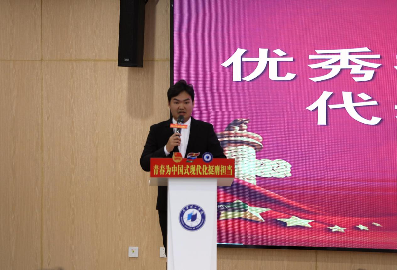 来自“国旗映彩·桂遗薪火”志愿服务团的刘博涛同学作为优秀学生代表上台发言,他分享了社会实践的真谛与知识价值,呼吁同学们牢记嘱托、挺膺担当,为实现中国式现代化贡献青春力量。文理学院黄兴老师作为优秀指导老师代表发言,他深深感动于同学们在实践中所展现的担当与智慧,同学们在实践中锤炼初心、照亮前路。