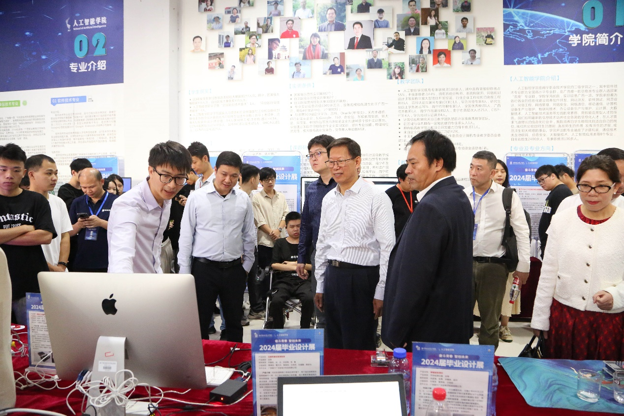 签约仪式后,与会人员参观了同时举办的南宁职业技术学院人工智能学院2024届毕业设计展暨华为联盟双选会。本次毕业设计展为期3天,共展出113件优秀毕业作品。作品涵盖云计算、软件技术、大数据、物联网、5G等新一代信息技术,紧扣区域及地方经济发展的科技成果。