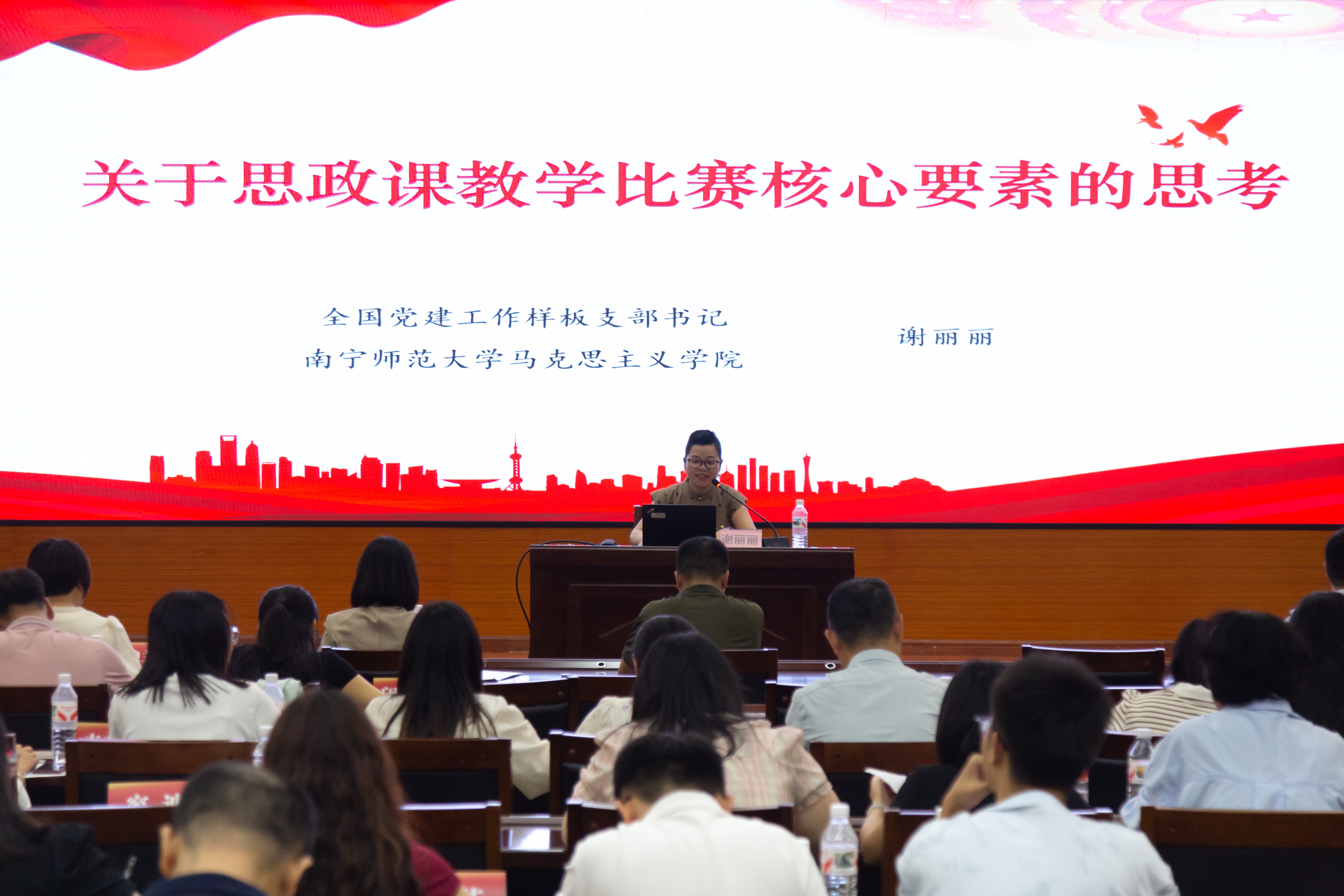 研讨班以专题讲座、研讨交流、现场教学的方式进行。广西中华民族共同体意识研究员学术委员会主任于瑮教授、南宁师范大学马克思主义学院副院长谢丽丽分别为研讨班作“以文化认同为基础,不断铸牢中华民族共同体意识”“关于思政课教学比赛核心要素的思考”专题讲座。学员们围绕如何开展铸牢中华民族共同体意识教育、如何推进“大思政课”建设、如何上好思政课等问题展开研讨。教学环节,学员们参观了学校思政课教师实践研修基地、智慧城市技术研发中心及谭湘光大师工作室。