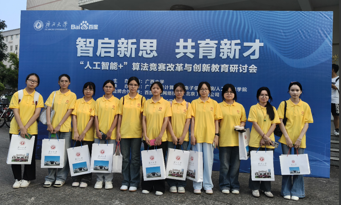 为深化产教融合,拓展学生在前沿技术领域的视野,2025年10月19日下午,我院组织相关专业的学生代表,前往广西大学计算机与电子信息学院,参加了由广西大学与百度公司联合主办的“百度AI开发与学生算法能力培养研讨会”。