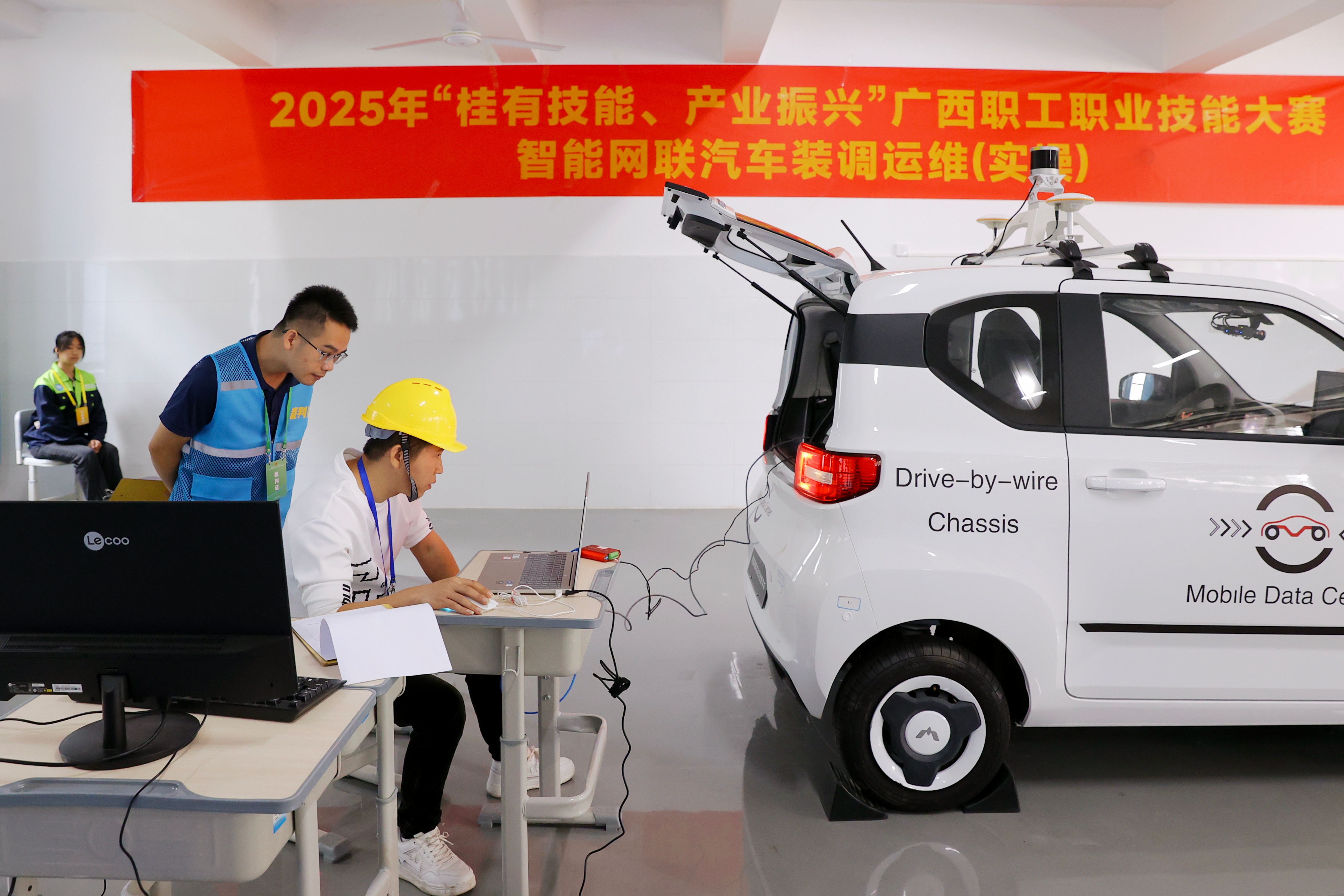 智能网联汽车装调运维赛项比赛现场(广西工人报社/摄)