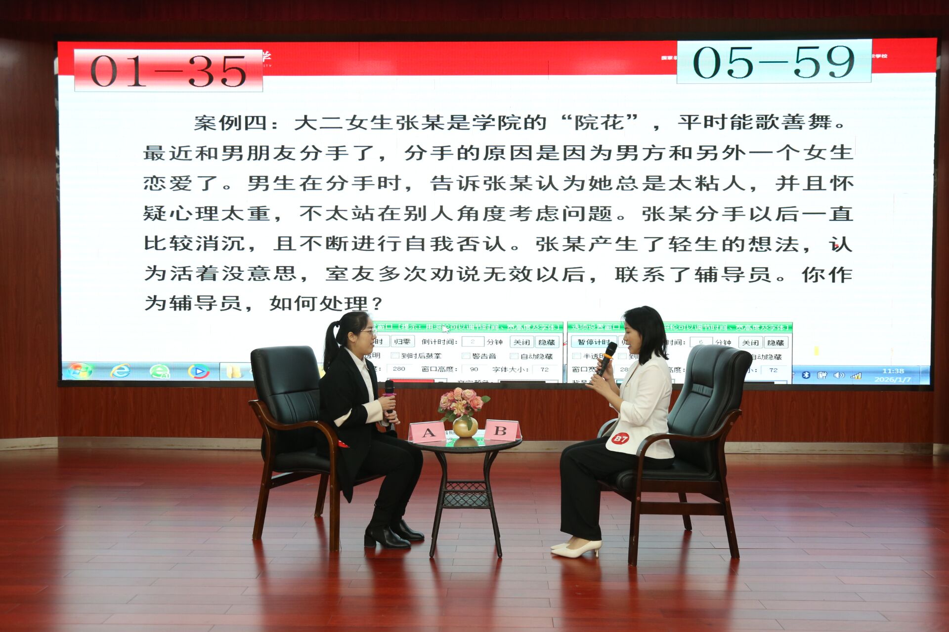 本次大赛历时四天,全程对标全国高校辅导员素质能力提升骨干训练营赛制,设置基础知识测试、学情分析、案例研讨与谈心谈话四个环节,全面考察辅导员的理论功底、分析能力、应急处置能力和沟通引导能力。比赛中,选手们沉着应对、思路清晰,充分体现出我校辅导员队伍扎实的政治素养和理论功底。