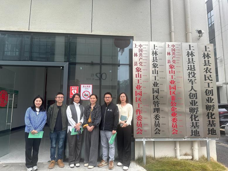 学院一行与上林县象山工业园区管委会相关负责人合影(数字经济学院蓝筱妮/摄)