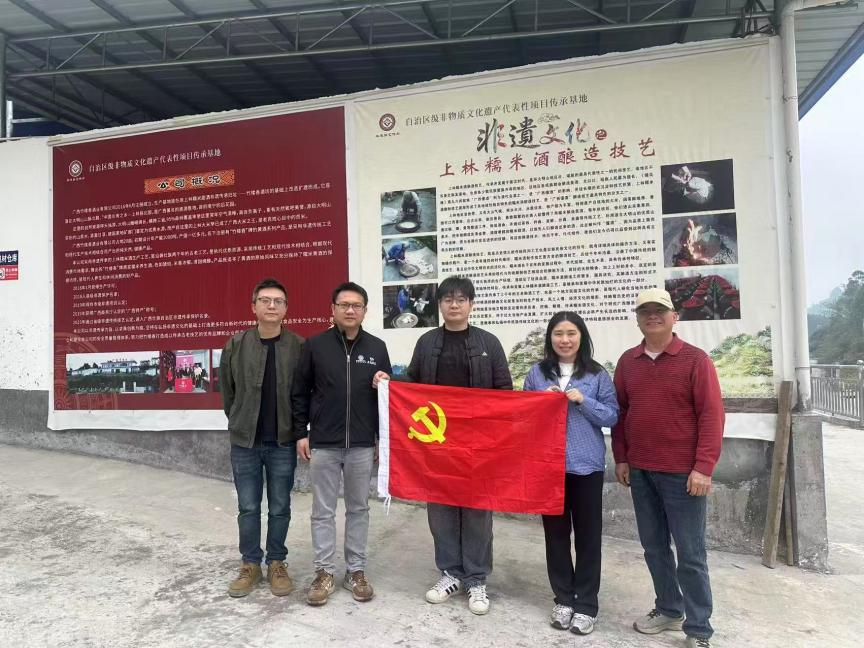 行程首站,在学院驻上林县玉峰村第一书记欧阳威老师的陪同下,实地考察了当地特色企业——广西竹楼香酒业有限公司,走访自治区级非物质文化遗产“上林糯米酒酿造技艺”的生产基地,详细了解酿造工序与企业营销需求,并就电商专业学生参与企业实践、推动非遗产品线上推广进行深入沟通。